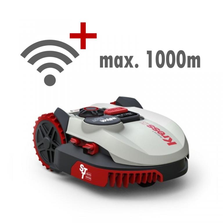Kress Mission WLAN+ Kress Mission WLAN + byl rozšířen o modul zesilovače WLAN. Ve velkých zahradách může být signál WiFi příliš slabý, aby pokryl všechny oblasti zahrady. Opakovač WLAN zajišťuje nepřetržité připojení k vašemu robotu v okruhu až 1 km - a tím zajišťuje, že obdržíte zpětnou vazbu a můžete provádět bezdrátové aktualizace softwaru |